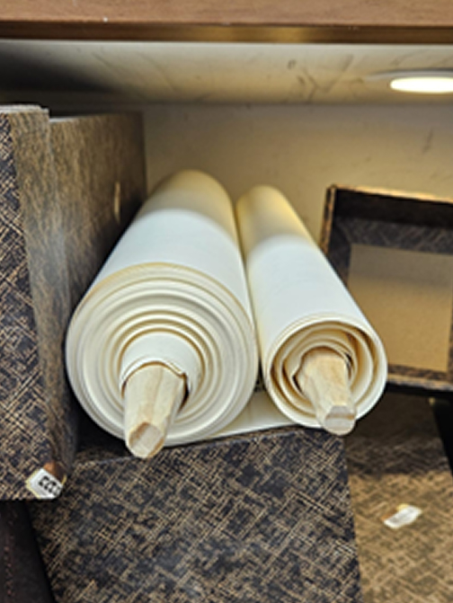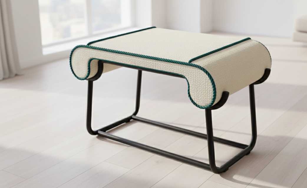 הצבעוניות מדברת קודש: שילוב הריפוד הבהיר על גבי שלדת המתכת השחורה משקף את הקונטרסט הנצחי של הדיו השחור על הקלף הלבן. פס הגימור התורכיז, המכניס נגיעה של צבע ומזכיר את פתיל התכלת – פרט קטן עם משמעות גדולה.